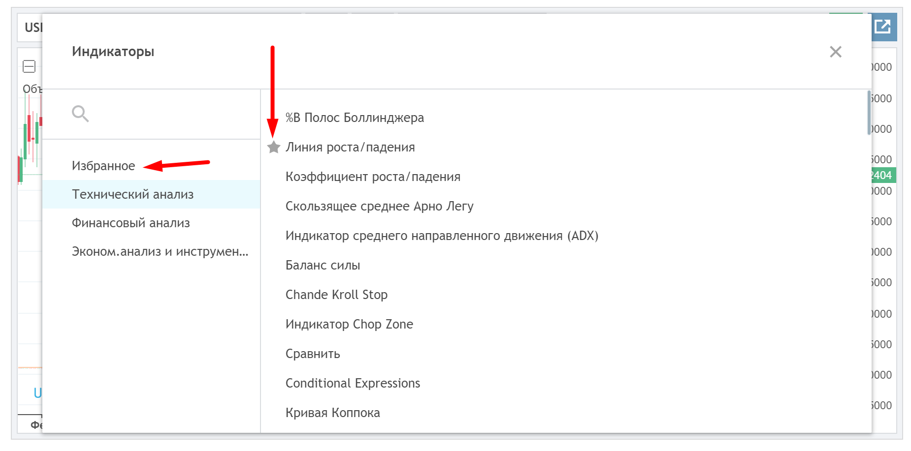 Любой индикатор можно добавить в «Избранные».