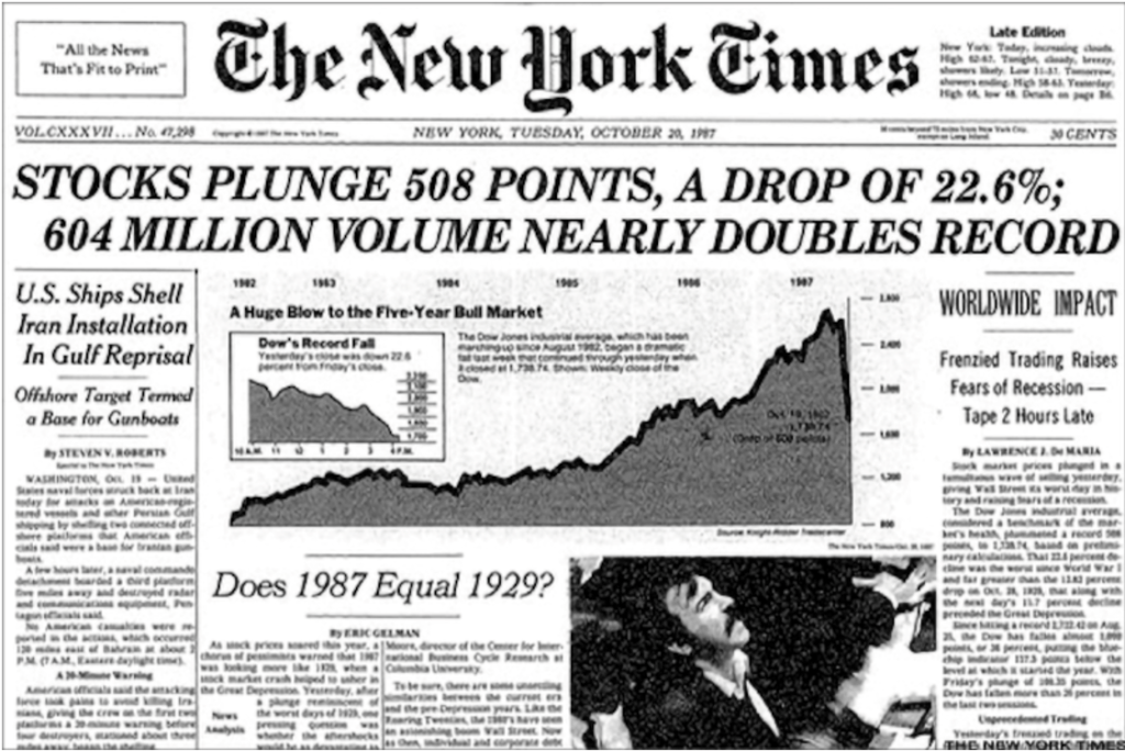 Как говорится, не было бы счастья, да несчастье помогло. В 1987 внезапно (не для всех, конечно), грянул жёсткий кризис, который будут сравнивать с большой депрессией и назовут Чёрным понедельником.