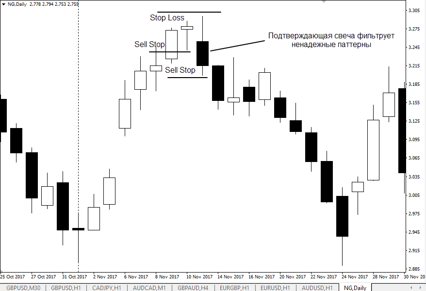 Лучше максимально жестко фильтровать паттерны и получать больший винрейт, чем брать в работу каждую конструкцию и собирать стопы на ровном месте. Это правило распространяется и на остальные свечные формации.
