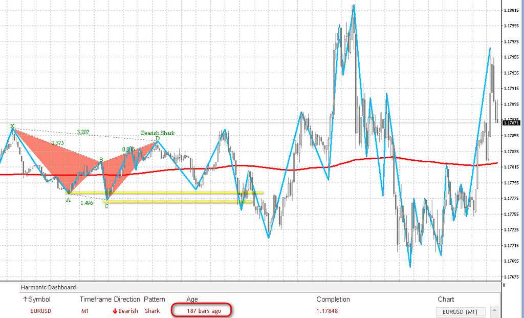 Визуально найти на графике любой из распространенных фигур (Краб, Акула, Гартли и т.д.) крайне сложно. Требуется выделить 5 главных уровней, включая участки ABC, ABCD. Еще понадобится учесть изменения цены в диапазоне, наличие тенденции.