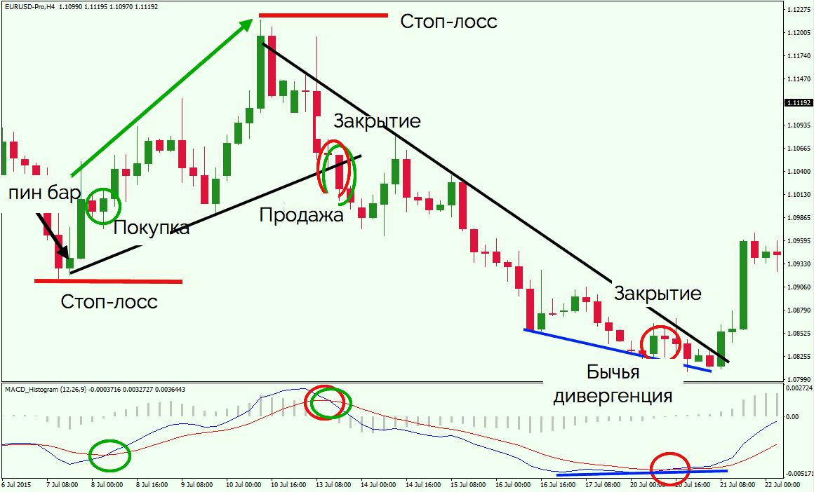Как видите, индикатор MACD довольно богат на разного рода сигналы и является универсальным торговым инструментом. Вы также можете эффективно торговать, используя MACD в сочетании с прайс экшен. Давайте рассмотрим некоторые примеры.
