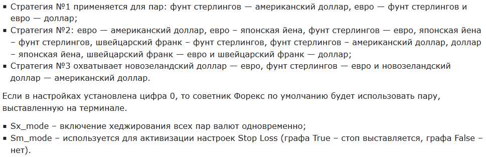 Работа робота возможна в валютах EURUSD, GBPUSD и USDJPY, поэтому настраивать ничего дополнительно не нужно. Чтобы начать торговлю при помощи безопасного Форекс советника, позволяется даже без корректировки настроек. Валютные пары в плане широкого спреда рекомендуется не применять, лучше придерживаться значения торговых активов, которые представлены в качестве рекомендованных.