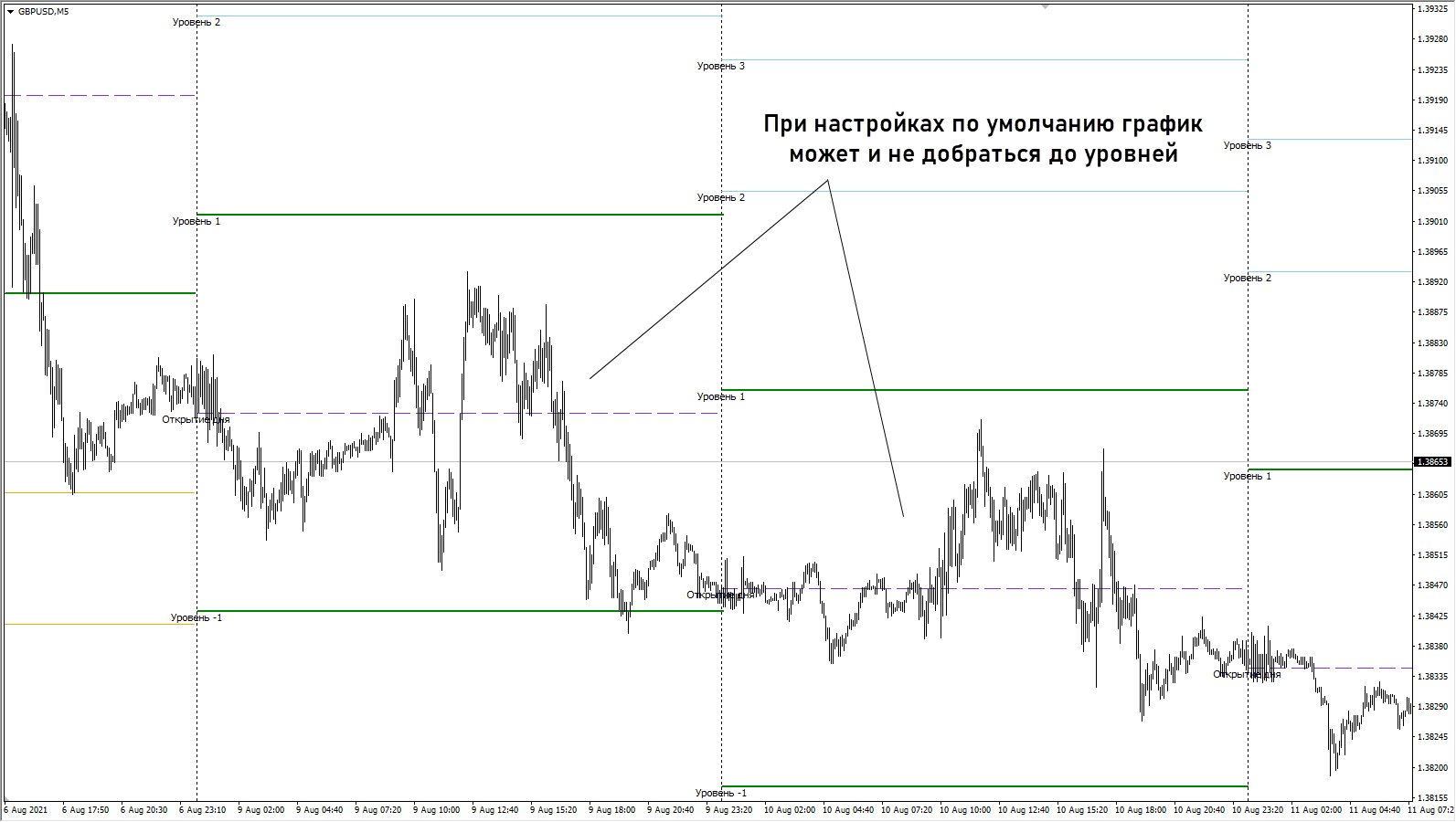 Уровни строятся по той же логике, что и в случае с Gann Levels, можно менять временные интервалы, на которых отображаются построения.