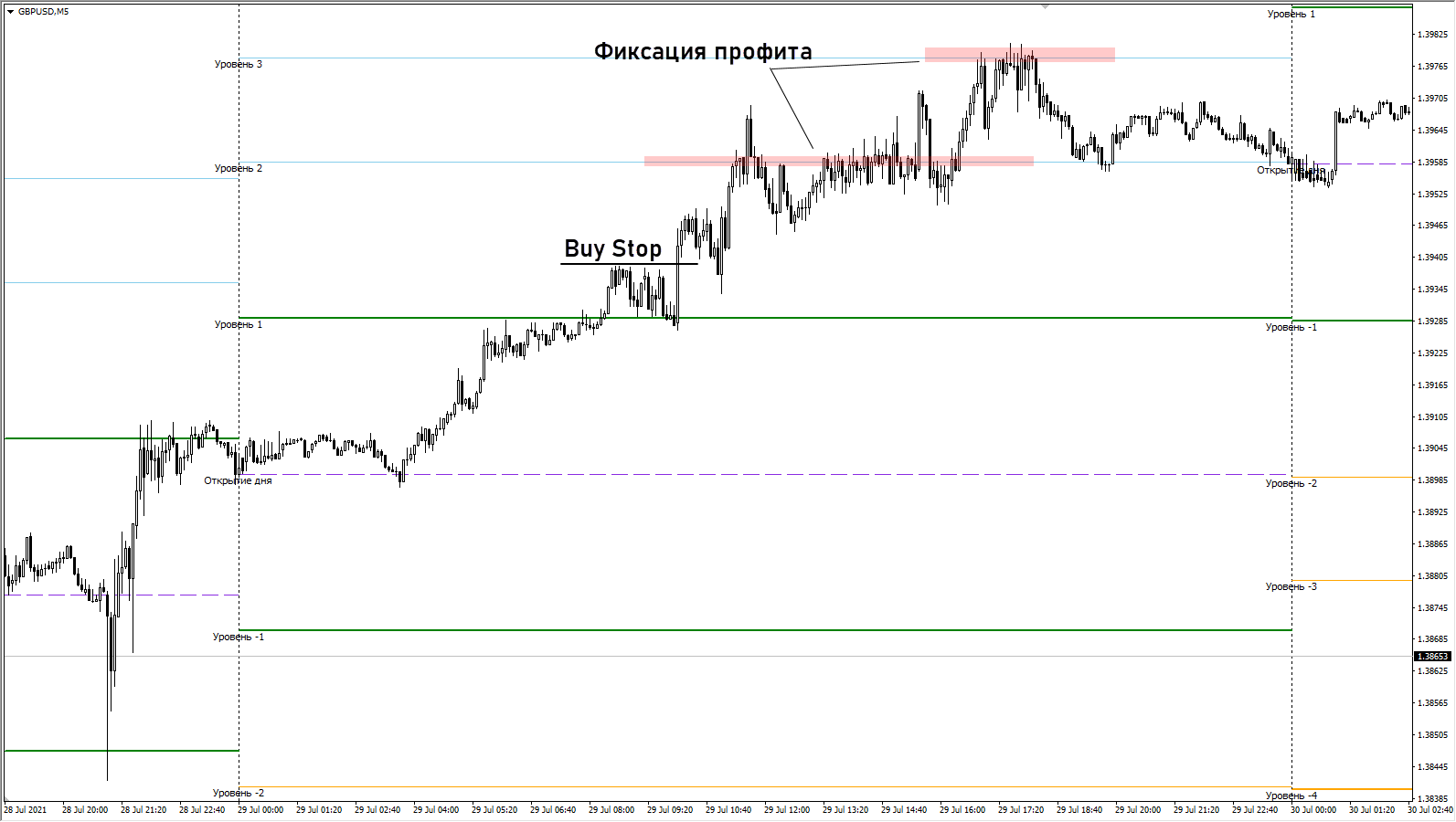Стоп лосс устанавливаем на 5 пунктов выше предыдущего максимума или в соответствии с вашими собственными предпочтениями.