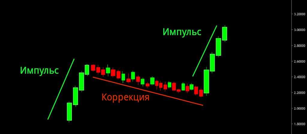 - Импульс. Еще одна популярная внутридневная стратегия, которая вращается вокруг ценового воздействия новостей. Важная для фондового рынка новость способна дать моментальный скачок цены на 20-30% и больше. Просто выбираем новость и открываем сделку в момент публикации. На графике это выглядит так: