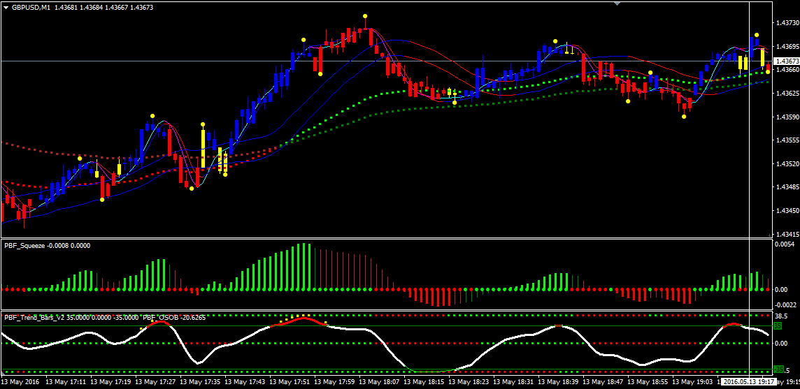В тактике применяются следующие авторские индикаторы, которые были разработаны исключительно для нее: PBF_Fast_3MAs, PBF_Scalper_Show_Me, PBF_PB_Direction, PBF_2EMA_Color, PBF_OSOB, PBF_iTunnel, PBF_Trend_Bars_v2, PBF_Squeeze.