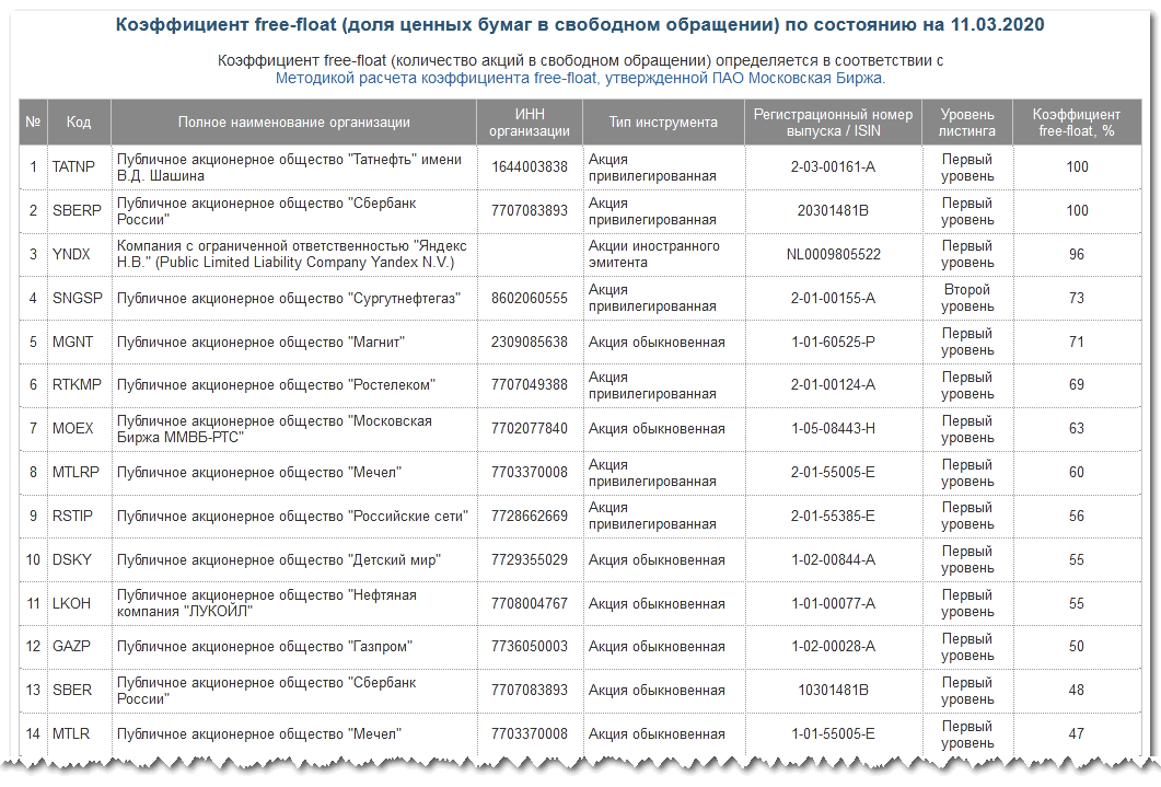 Для российского рынка подойдет ряд ресурсов с актуальными данными по free-float: