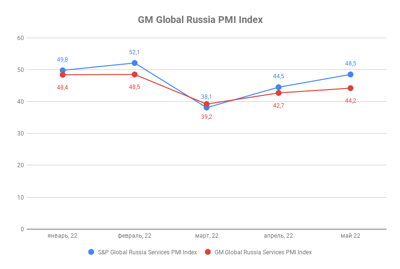 - Значение индекса ГлобалМедиа PMI с марта не превышает пороговое значение 50 п.п.