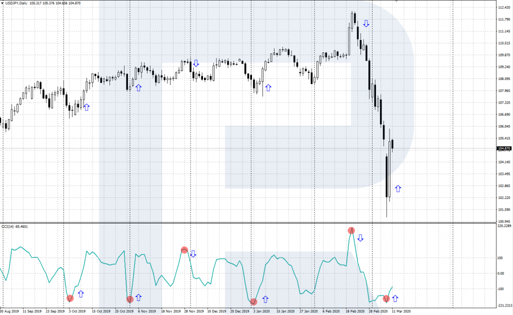 Показатель выше +100 может означать, что актив перекуплен и предполагается снижение цены. Показатель ниже -100, в свою очередь, указывает на перепроданность актива, в результате которой цена может вырасти.