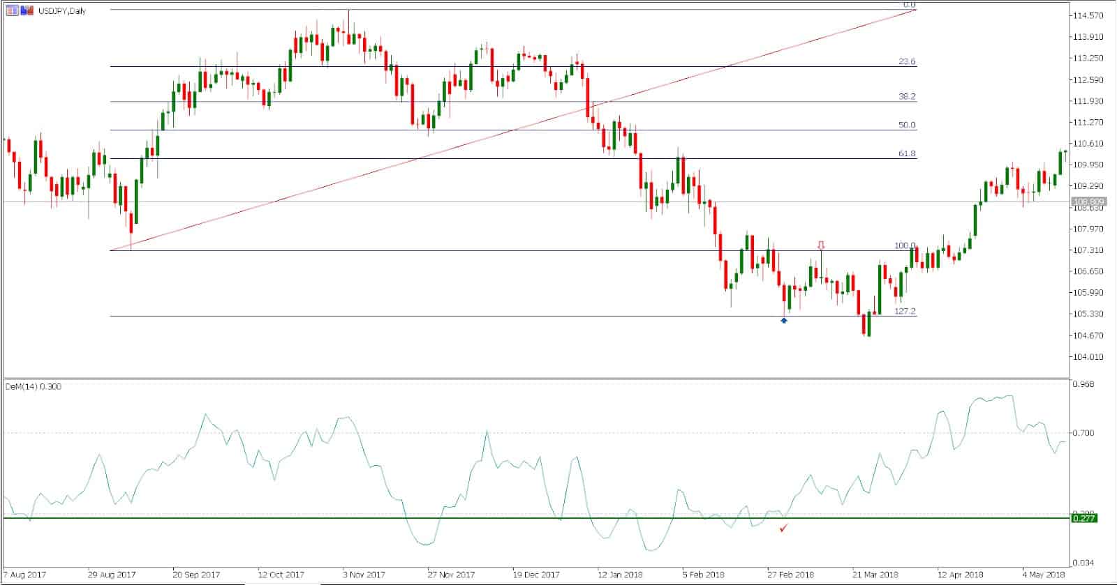 выявления величины коррекциив определенном торговом каналепо индексу Доу-Джонса(DeMarker Indicator)