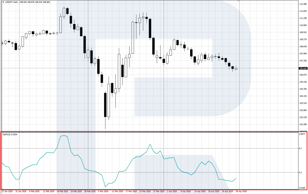 Как и положено осциллятору, DeMarker дает представление о том, в каком состоянии сейчас находится рынок: