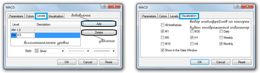 Настраиваются данные индикаторы почти так же, как и ранее рассмотренный FX5 MACD Divergence: