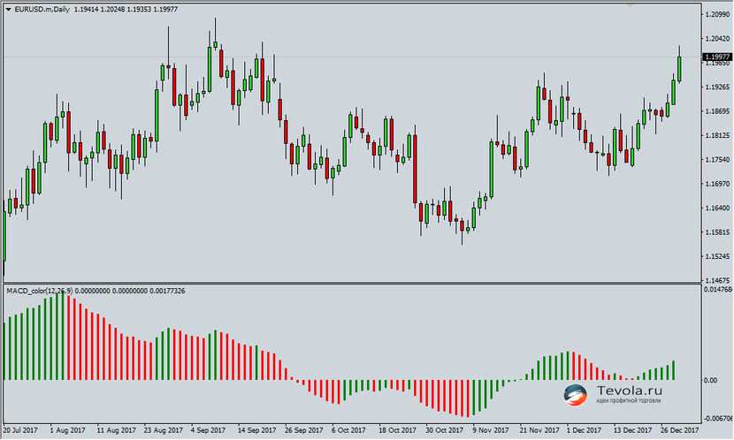 Самая лучшая возможность для входа в сделку, это точки, где меняется тренд с нисходящего на восходящий и наоборот. Нам нужно отследить моменты, где индикатор меняет цвет гистограммы с зеленого на красный для попыток поймать нисходящее движение и с красного на зеленый, чтобы поймать начало восходящего движения.