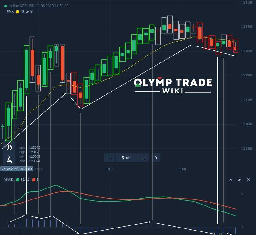 Ознакомившись с расположенной выше картинкой, вы можете заметить такие сигналы как пересечение кривых и дивергенцию.