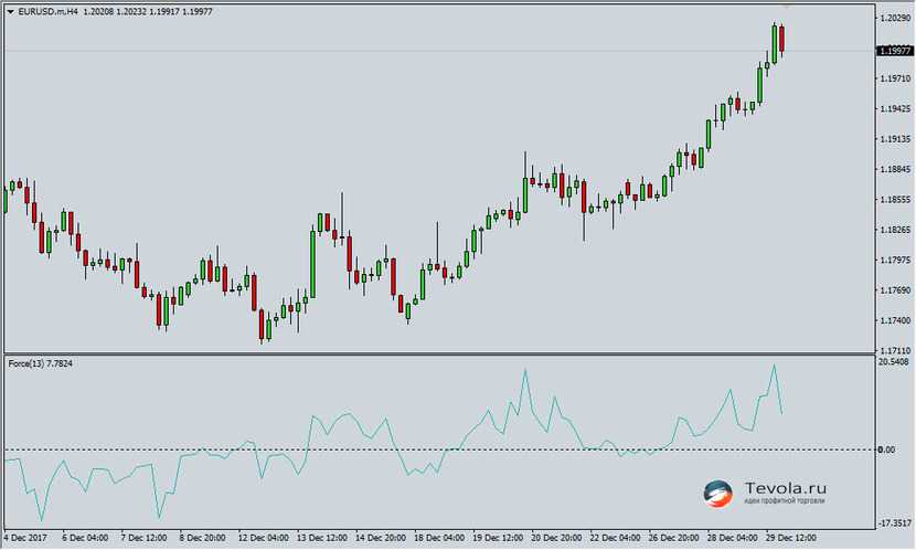 Большинство участников биржевой торговли считают, что устойчивое обновление максимальных экстремумов в положительной зоне – это признак того, что нисходящий тренд полностью затухает, причем переход гистограммы в отрицательную зону может являться коррекцией, после чего тренд «быков» может снова усилиться. Вызывает сомнение сигнал на открытие сделки на продажу в виде устойчивого роста индикатора «медвежьей» силы тогда, когда он находится под нулевой отметкой. Самым сильным сигналом его считается дивергенция, которая образовалась между осциллятором и графиком цены.