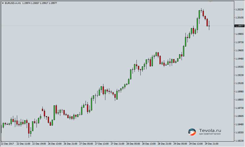 В результате трейдер может увидеть более четкую картину: если на недельном графике преобладает флэт, то на дневном можно увидеть нисходящий тренд. Вместе с тем, на 4-часовом фрейме наблюдается восходящая тенденция. Ее можно трактовать только как откат цены в противоположном направлении – соответственно, делать долгосрочный прогноз на повышение не стоит.
