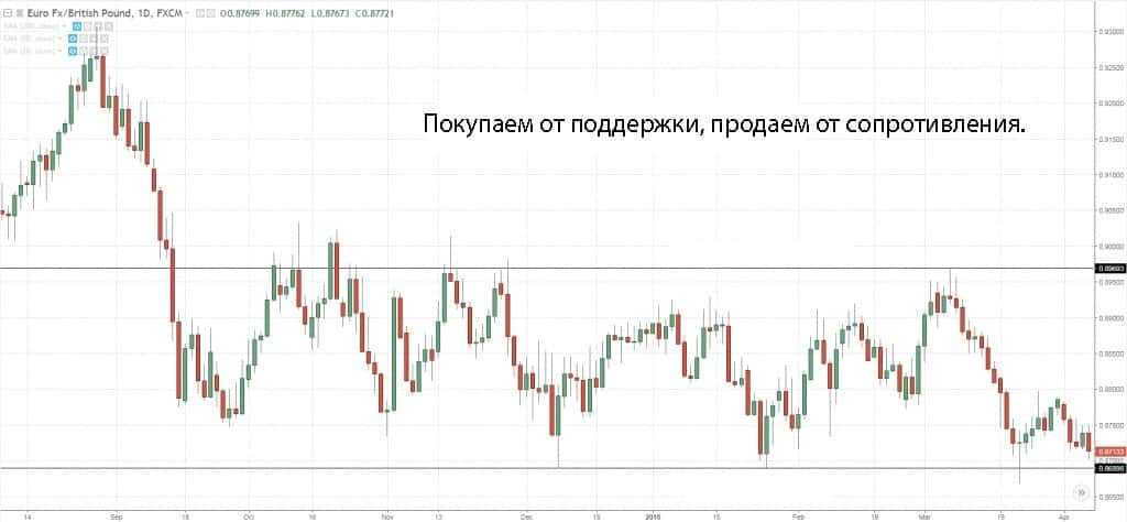 Индикатор точно показывает нам границы торгового диапазона. Но разве нам это нужно? Ведь и без индикатора все выглядит достаточно очевидно. Мы покупаем на уровне поддержки, продаем на уровне сопротивления. И получаем точно такие же результаты.