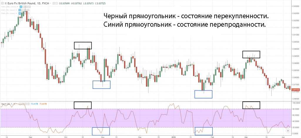 Стохастический осциллятор связан с диапазоном, что означает, что его значения всегда колеблются от 0 до 100. Это делает его полезным индикатором для определения перекупленности и перепроданности. Традиционно значения выше 80 сообщают перекупленности, а показания ниже 20 — перепроданности. Тем не менее, нахождение стохастика в этих областях не всегда указывает на предстоящий разворот, поскольку очень сильные тенденции могут поддерживать условия перекупленности или перепроданности в течение более длительного периода.