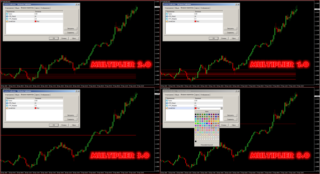 уменьшении мультиплеера до значения 1.0, мы видим, что кластеры индикатора, как