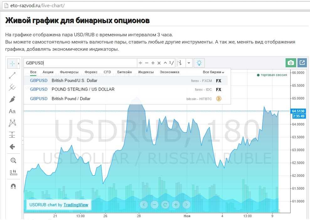 Чтобы осуществить трейдинг по ТС «Roller Coaster», помимо терминала для бинарных опционов брокерской компании , нам потребуется сервис Tradingview, с помощью которого у вас будет возможность применить к каждому из графиков активов лучшие индикаторы без перерисовки. Так же, вы можете использовать на нашем сайте. Такие индикаторы и будут формировать для вас торговые сигналы для прибыльного трейдинга. Перейдя на сайт или воспользовавшись нашим , вы вписываете в графу на его главной странице имя того актива, по которому вы решили получать торговые сигналы, а в дальнейшем – торговать бинарными опционами (смотрите скрины):