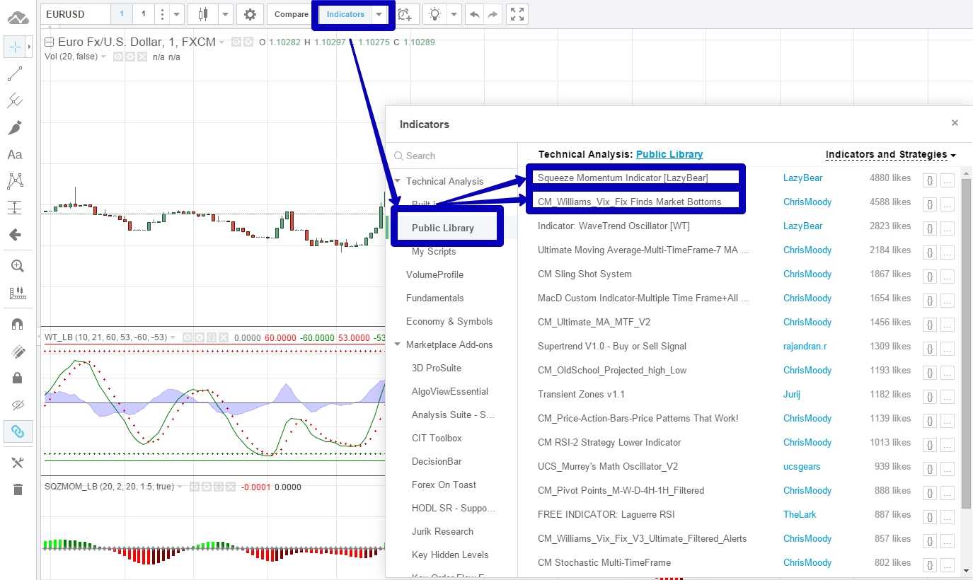, это — Squeeze Momentum Indicator и CM Williams Vix Fix, которые признаны лучшими, ведь не просто так они расположились в пользовательском рейтинге на первых местах: