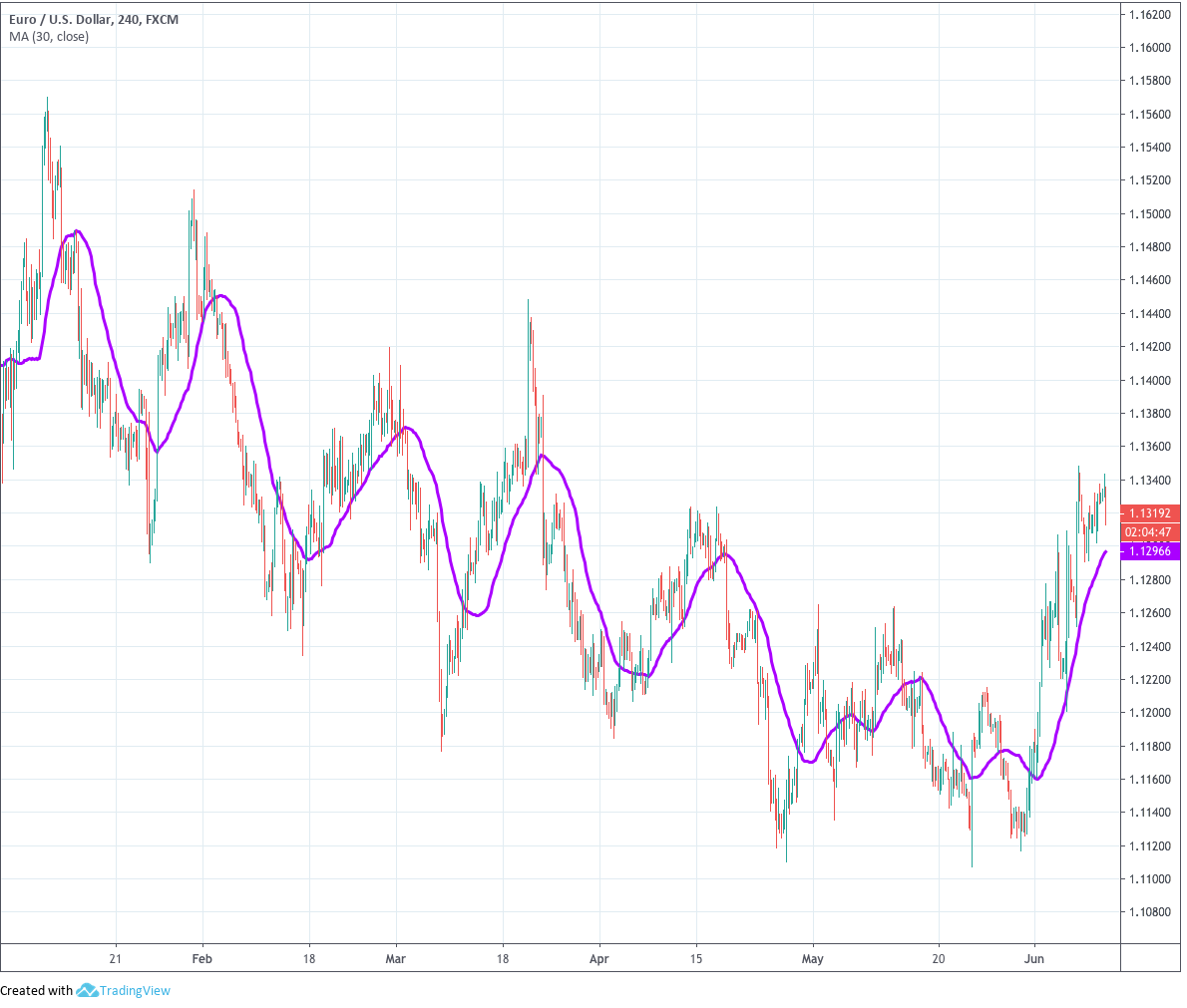 В трейдинге, анализ рынка на основе сглаживания скользящим средним помогает определить перекуплена или перепродана валютная пара, акция, облигация, фьючерс или тот инструмент который торгуете вы, на текущий момент.