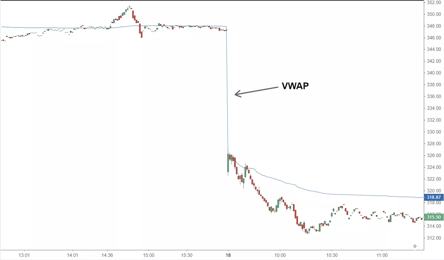 This can be seen in the way a 1-minute period VWAP calculation after 330 minutes (the length of a typical trading session) will often resemble a 390-minute moving average at the end of the trading day.