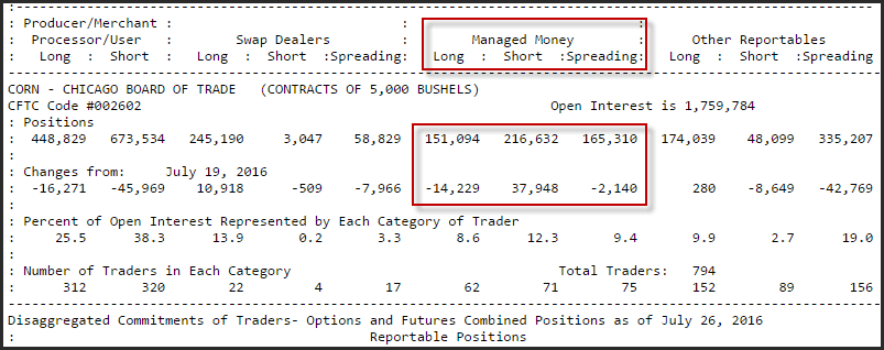На примере видно, что управляемые деньги увеличили короткую позицию по фьючерсам и опционам почти на 38 тыс. контрактов, в то же время сократив короткую позицию по фьючерсам и опционам чуть более чем на 14 тыс. Общий открытый интерес к управляемым деньгам составляет 151 094 длинных фьючерса и опциона против 216 366 коротких фьючерсов и опционов.
