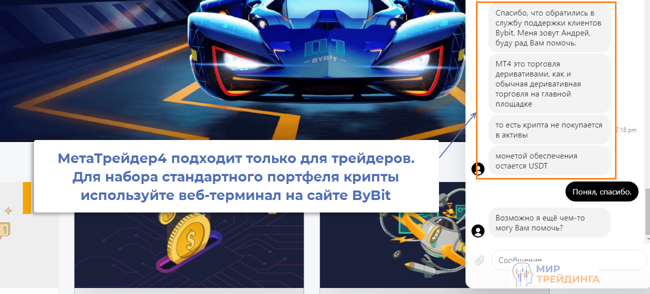 В отличие от CFD брокеров при работе через MetaTrader4 у ByBit: