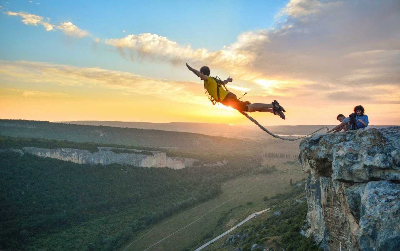 - Роуп-джампинг. Это прыжки с огромной высоты с веревкой. Самый сложный момент — тот самый шаг или прыжок, который надо сделать. В отличии от прыжков с парашютом, никто и никогда не толкает людей — решение должно быть принято самостоятельно.
