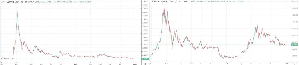 График биткоина и XRP. Данные: Investing