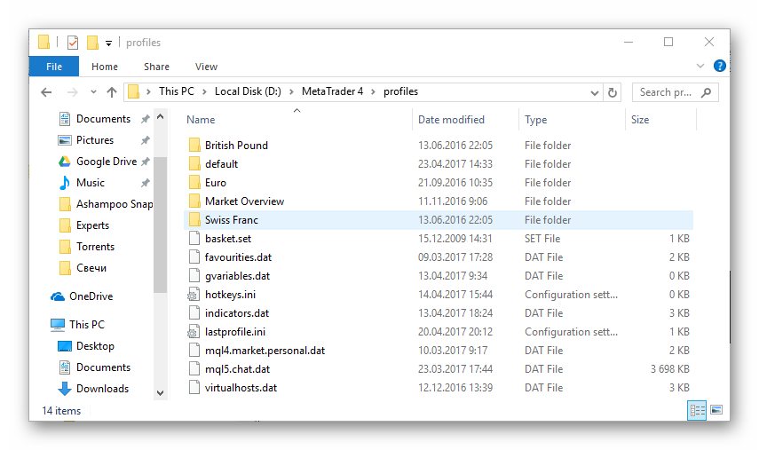 Все сохраненные профили находятся в каталоге данных терминала, в папке “profiles”. Папку с профилем вы можете перенести на другой компьютер, с сохранением всего торгового окружения.