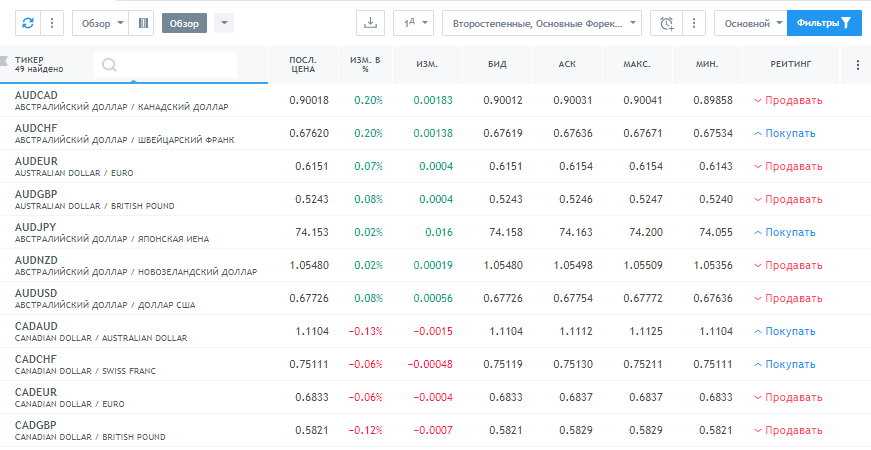 - раздел с информацией об актуальных финансовых и торговых инструментах;