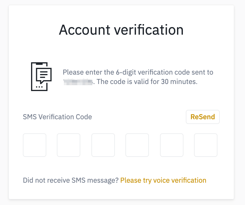 4. Система отправит вам проверочный код по SMS на ваш мобильный телефон. Пожалуйста, введите 6-значный проверочный код в течение 30 минут. Если вы не можете его получить, нажмите или , чтобы использовать голосовое подтверждение.