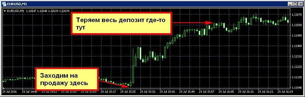 Т.е. фактически компания напрямую предлагала сделать ставку без стопов с максимально возможным плечом в размере 2 775 долларов на рост курса доллара, т.е. встать на продажу пары EUR/USD (курс 1.11). Что получится, если курс после выхода новости пойдет не вниз, а вверх?