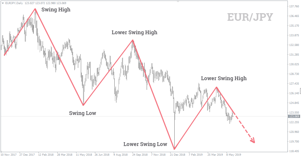 Проанализировав последние волны ценового движения и колебания курса EUR/JPY, мы нашли более низкие максимумы и более низкие минимумы этих колебаний