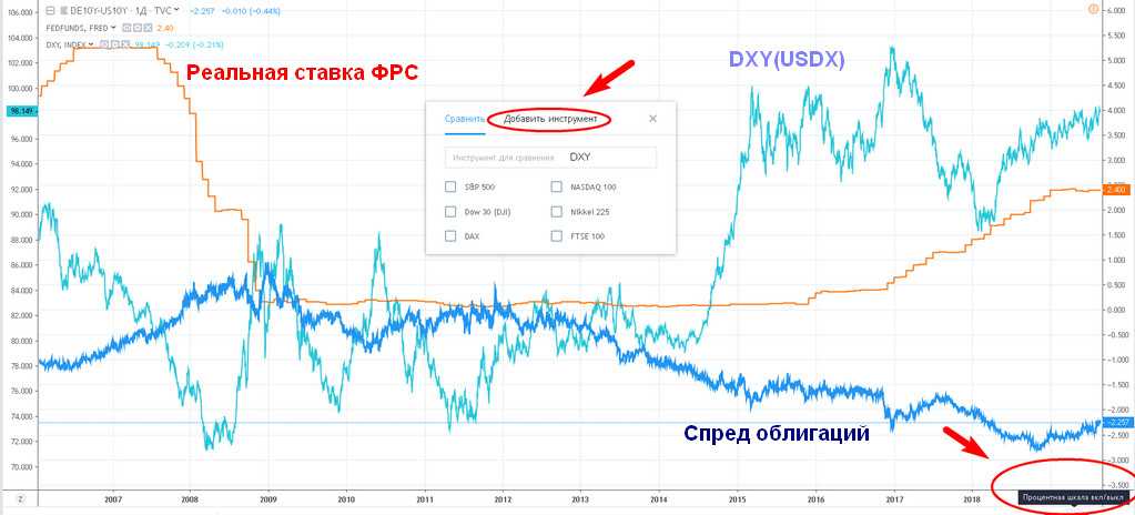 Чтобы использовать влияние ставок на основные валюты, следует собрать следующую конструкцию на графике: