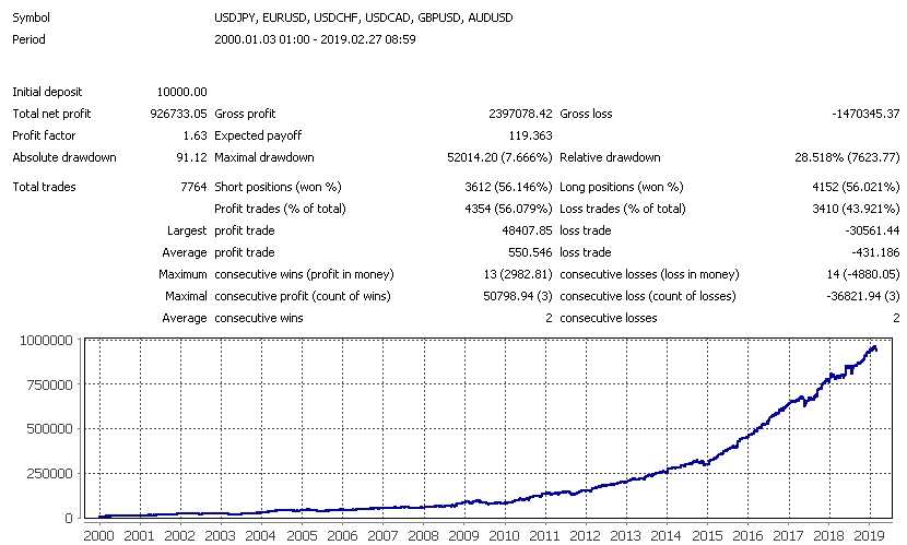 Ниже я приведу сводные таблицы для каждого этапа построения системы для USDCHF, GBPUSD, EURUSD, USDJPY, USDCAD и AUDUSD, а также совмещенные тесты.