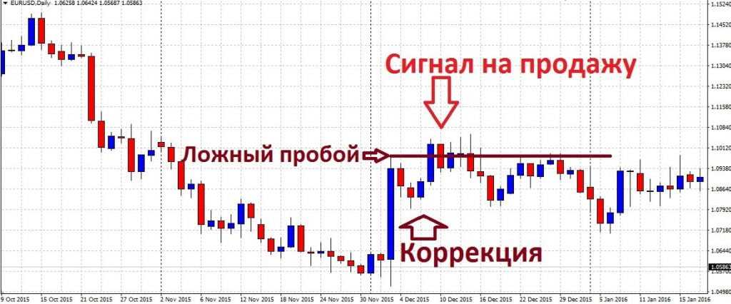 Рисунок 4. SELL-сигнал при ложном пробое после коррекции
