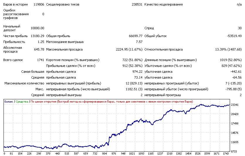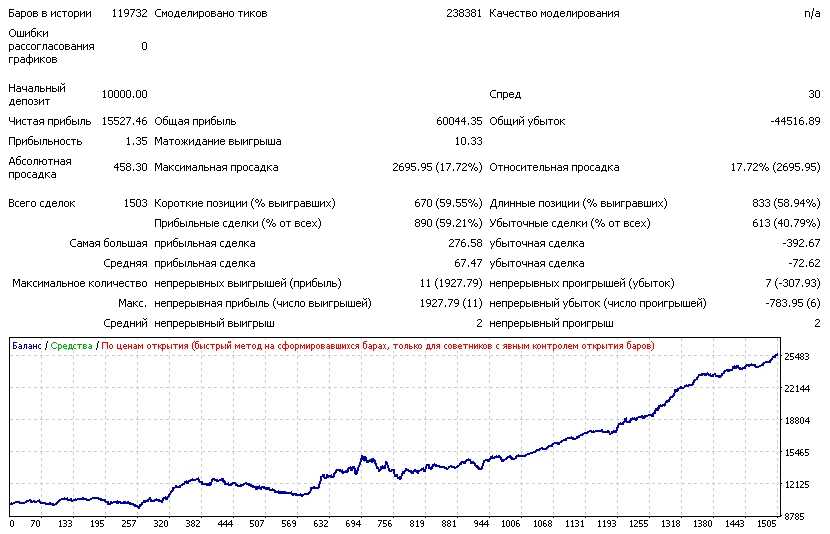 Результаты незначительно улучшились. И, напоследок, добавим применение паттерна TDW – будем разрешать или запрещать торговлю в определенные дни недели: