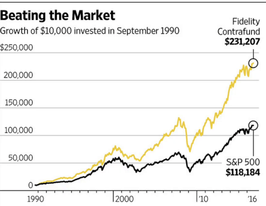 Линч известен своим трудоголизмом — он работал портфельным менеджером не менее 6 дней в неделю. С помощью двух помощников, отвечающих за исследования компании, он одновременно инвестировал в 1400 компаний. В течение этого времени он приносил в среднем 29,2% в год для инвесторов, что более чем вдвое превышало среднюю доходность эталонного индекса, которым в данном случае был S&P 500. За 13 лет только за два года его результаты оказались хуже, чем рост рынка.