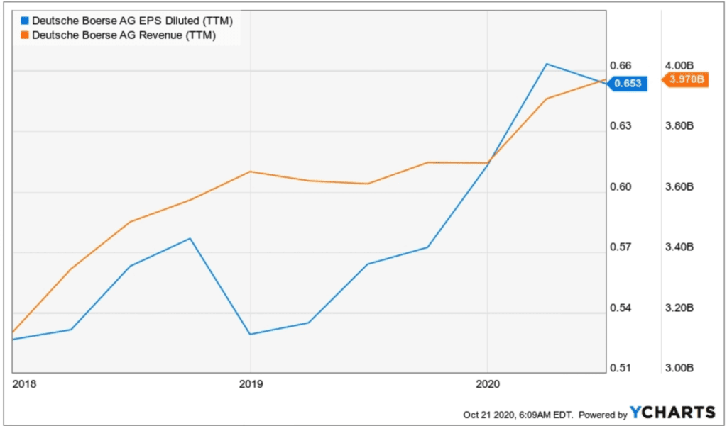 Капитализация Deutsche Borse составляет 30,5 миллиардов долларов. При этом интересно, что основной доход биржа получает за счёт сегментов по торговле деривативами и от клиринговых и депозитарных услуг.