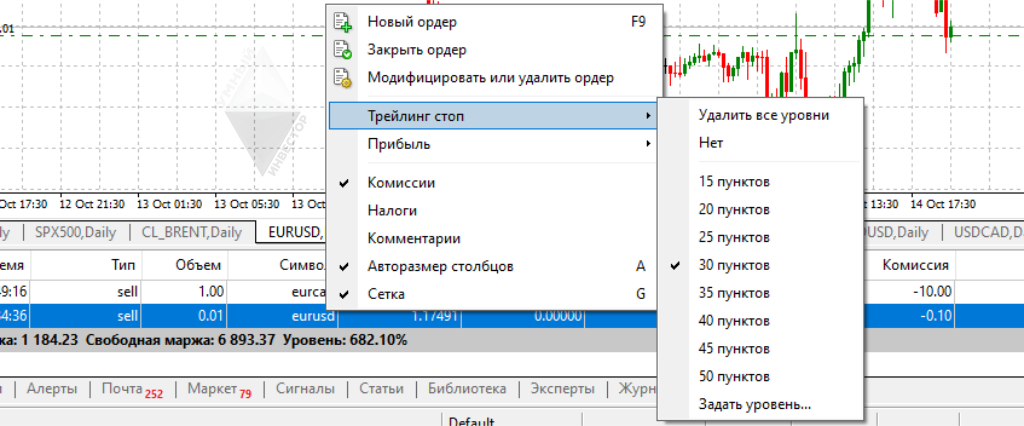 Как вызвать и как работает трейлинг стоп?