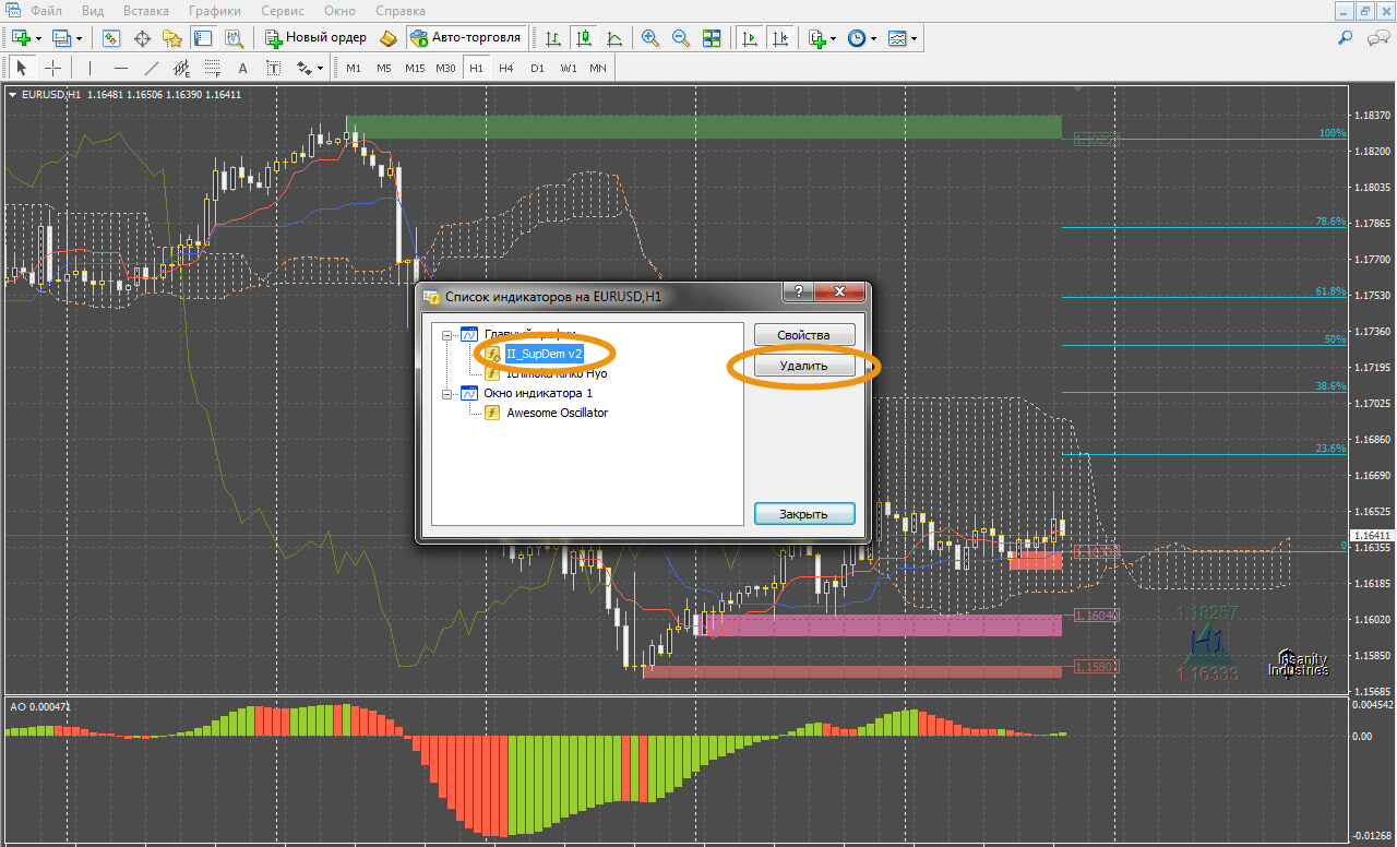 Рис. 17. Так можно удалить с графика ненужный индикатор