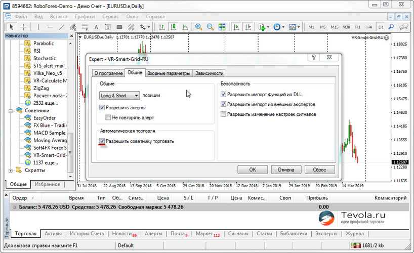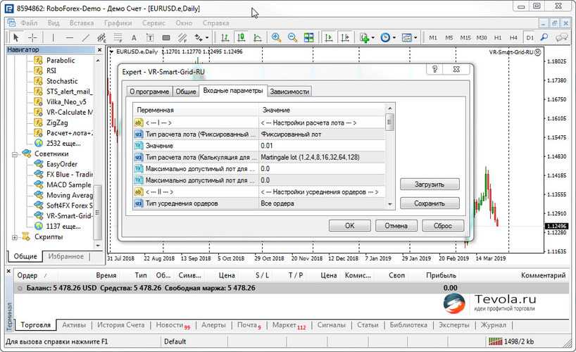 Еще, нас очень сильно интересует вкладка «Входные параметры», ведь именно здесь располагаются основные настройки скаченного торгового советника. Смысла рассказывать про настройки именно VR Smart Grid, который установил я, наверно нет, тк настройки у всех разные, а вот в общем, что здесь имеется, остановлюсь.