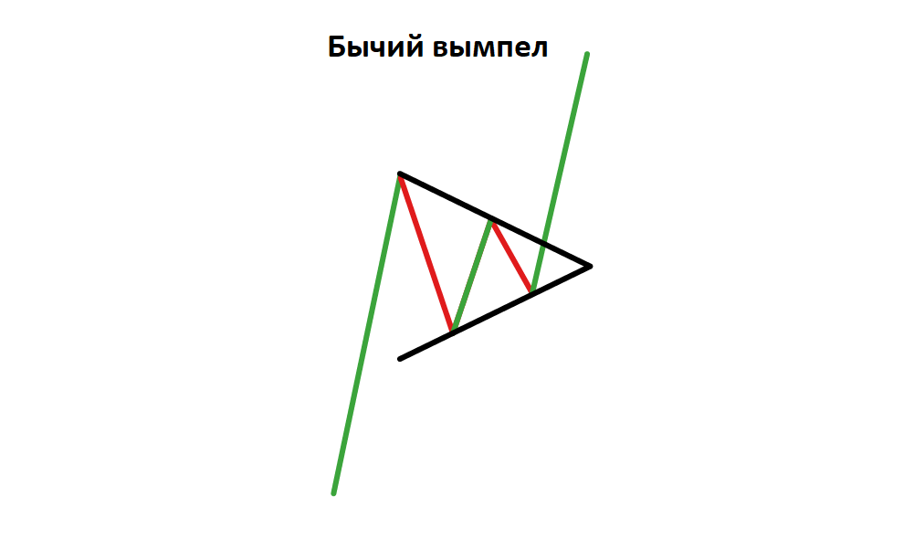 Эта треугольная модель называется вымпел, но ее не следует путать с более масштабным паттерном симметричный треугольник.