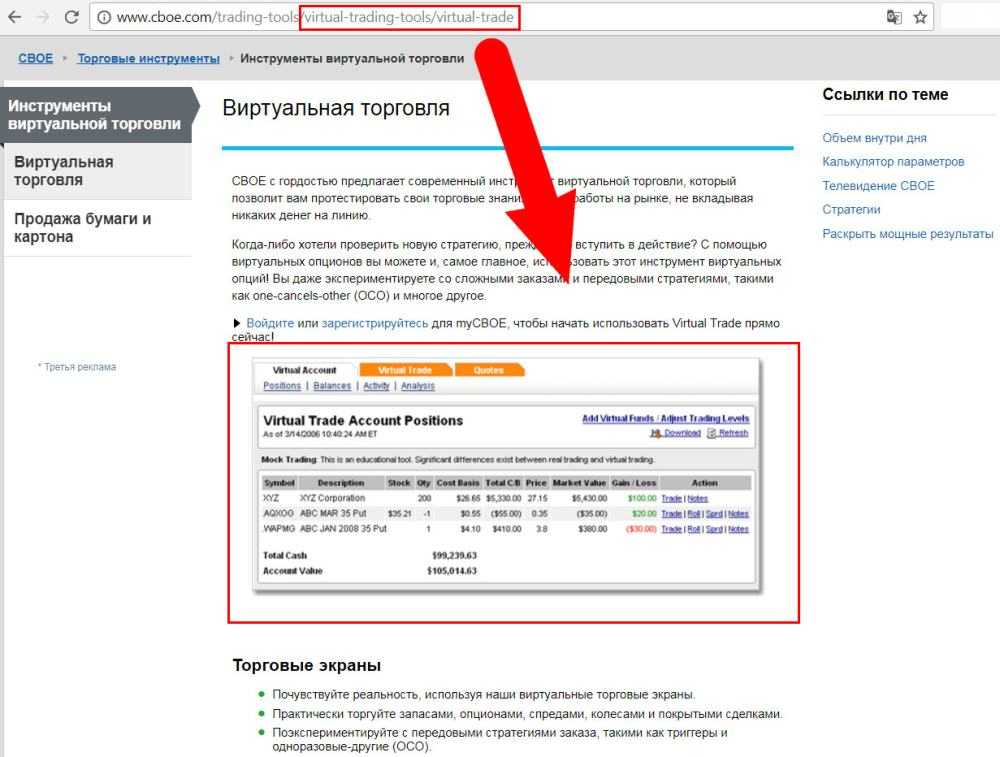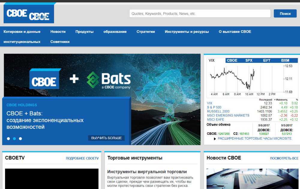 Чикагская биржа опционов (Chicago Board Options Exchange). Здесь популярны опционы на фондовые индексы. Также на бирже можно купить или продать опционы на процентные ставки, опционы на индексы иностранных акций, опционы на отраслевые индексы,