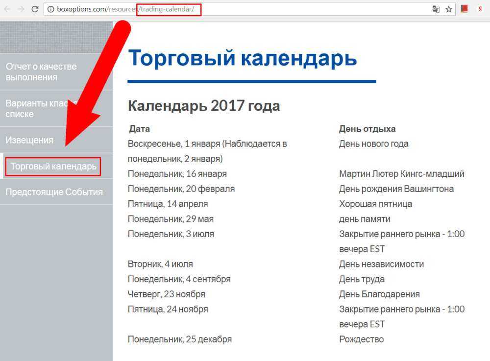 На электронной торговой платформе Globex торговля идет круглосуточно с перерывом 1 час. Информацию о праздничных и выходных днях можно найти на сайте торговой биржи. Расписание может меняться, поэтому за актуальной информацией нужно обращаться в раздел «holiday calendar».