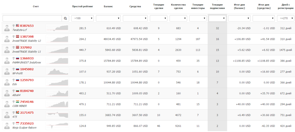 На фоне наличия в компании Instaforex отличных сервисов для трейдеров, которые получают самые лучшие реальные отзывы, у брокера достаточно хорошо развиты и инвестиционные сервисы. И начнем их обзор именно с ПАММ-счетов, рейтинг которых у брокера пестрит большим количеством ПАММов: