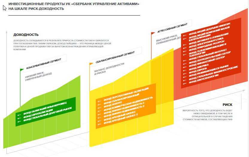 Теперь, после маленького ликбеза расскажу, как я зарабатываю на инвестициях в ПИФы (как экономить на вводе-выводе это было выше).Все ПИФы делятся на три группы по соотношению риск/доходность: низкие риски/ доходность, средние риски/доходность и высокие риски/доходность.
